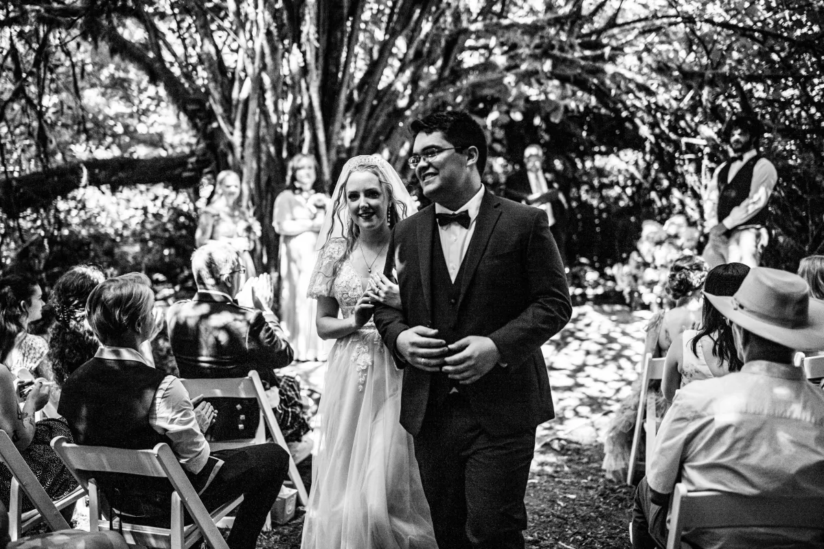Moon Gully’s gardens offer vibrant color and natural backdrops without the need for extra décor. Couples exchange vows surrounded by flowers, forest light, and open skies.